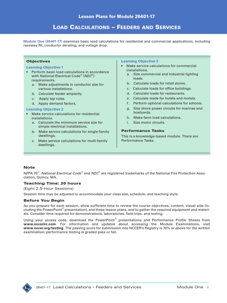 Branch and feeder circuits 17 5 hours trainee 20 isbn 978 0 13 480513 9 instructor 20 isbn 978 0 13 480520 7 module id 26301 17 explains how to calculate branch circuit and feeder loads for residential and commercial applications.