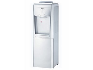 There appears to be water leaking from the water cooler possibly forming a puddle on the floor beneath the cooler.