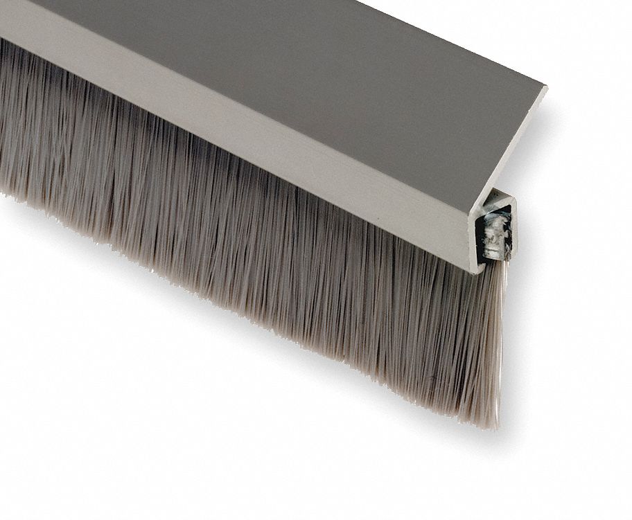 Dc usa approved commercial bottom door brush sweep 3 4 clear aluminum channel 5 8 brush 36 long aluminum finish with gray nylon brush insert usually ships in 24 to 72 hours list price.