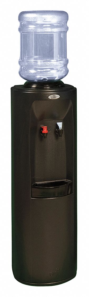 The water dispenser is equipped with a bottom storage cabinet and accepts all 5 gallon water jugs.