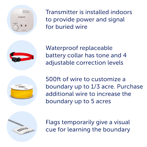 Once your pet learns the boundary zone he will be reluctant to cross it for walks or car rides.